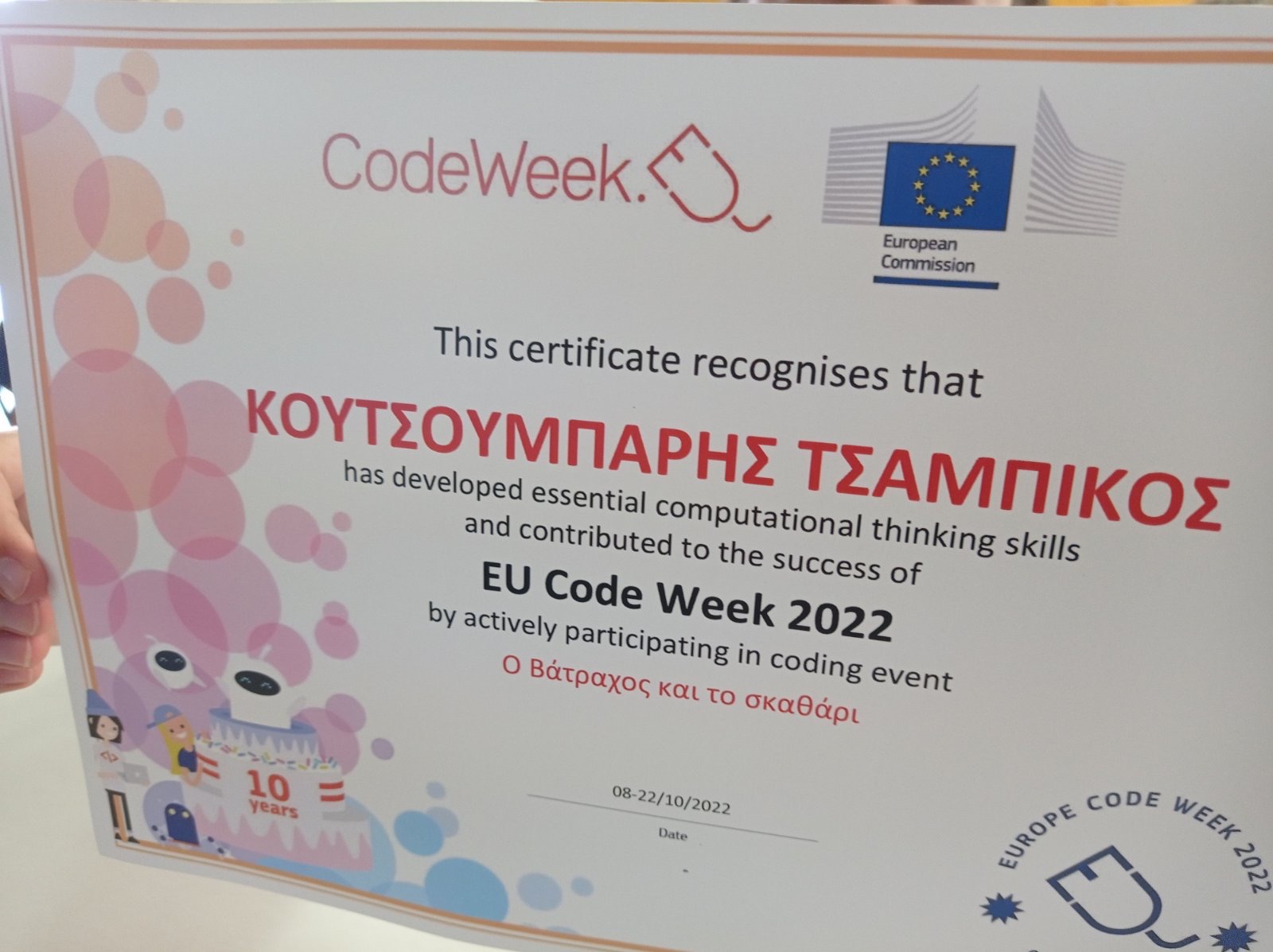 Οι τάξεις Ε’ και ΣΤ’ του Δημοτικού Σχολείου Παραδεισίου, συμμετείχαν στην Ευρωπαϊκή Εβδομάδα Προγραμματισμού για το διάστημα 8-23/10.