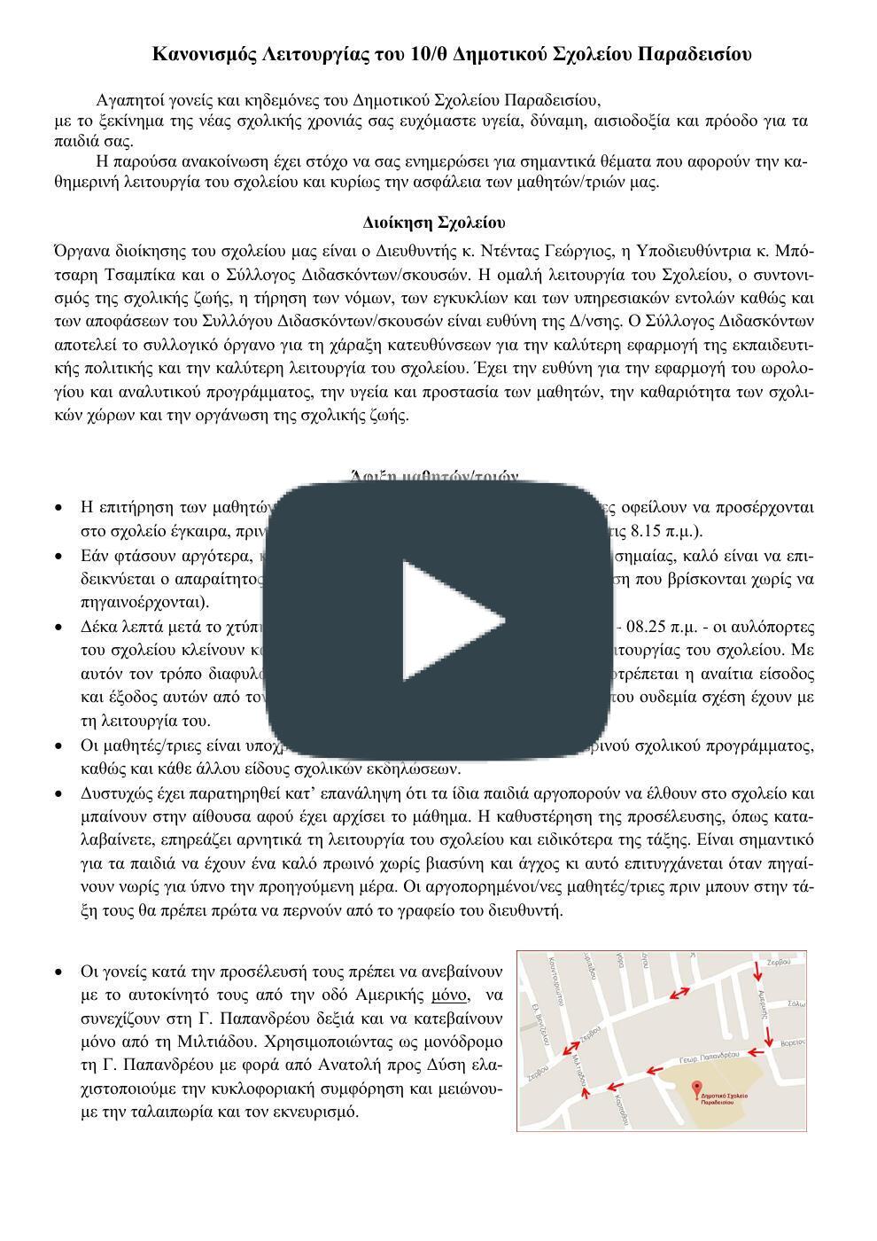 ΚΑΝΟΝΙΣΜΟΣ ΛΕΙΤΟΥΡΓΙΑΣ ΤΟΥ ΣΧΟΛΕΙΟΥ ΣΧ. ΕΤΟΣ 2024-2025 27 Σεπτεμβρίου 2024 από ΔΗΜΟΤΙΚΟ ΣΧΟΛΕΙΟ ΠΑΡΑΔΕΙΣΙΟΥ ΡΟΔΟΥ Λήψη αρχείου Συντάκτης: ΔΗΜΟΤΙΚΟ ΣΧΟΛΕΙΟ ΠΑΡΑΔΕΙΣΙΟΥ ΡΟΔΟΥ Περισσότερες πληροφορίες