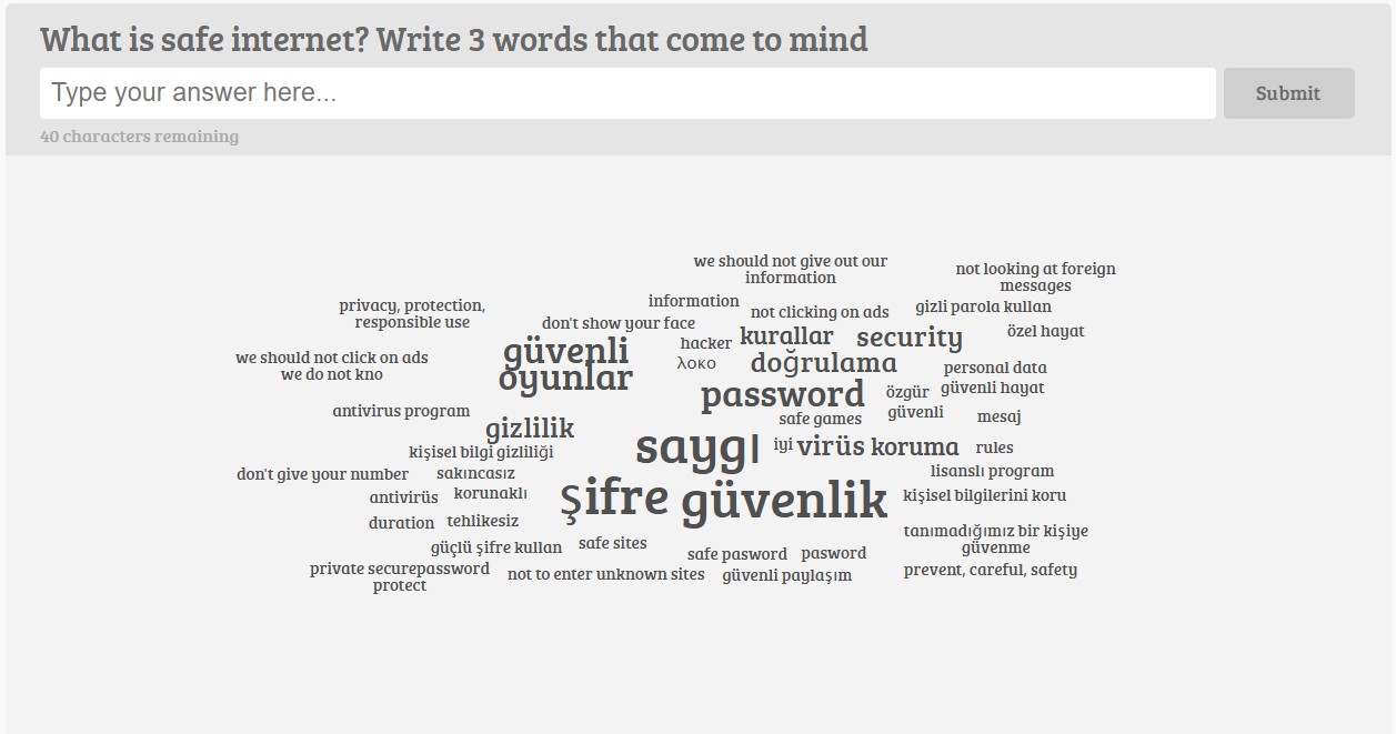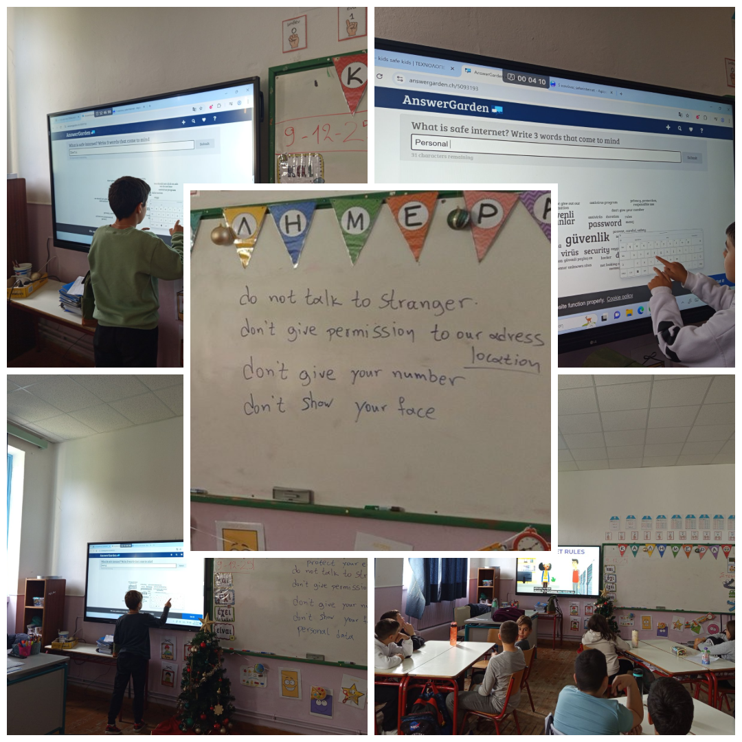 Το μήνα Δεκέμβριο οι μαθητές/τριες εξοικειώθηκαν με την Ασφαλή χρήση του διαδικτύου μέσω 2 βίντεο. Έπειτα, έγραψαν 3 λέξεις που τους έρχονται στο μυαλό για την ασφάλεια στο διαδίκτυο σε συνεργασία με τα άλλα σχολεία. Στη συνέχεια, έφτιαξαν 5 κανόνες για το ασφαλές διαδίκτυο, με τους οποίους δημιούργησαν μια αφίσα.