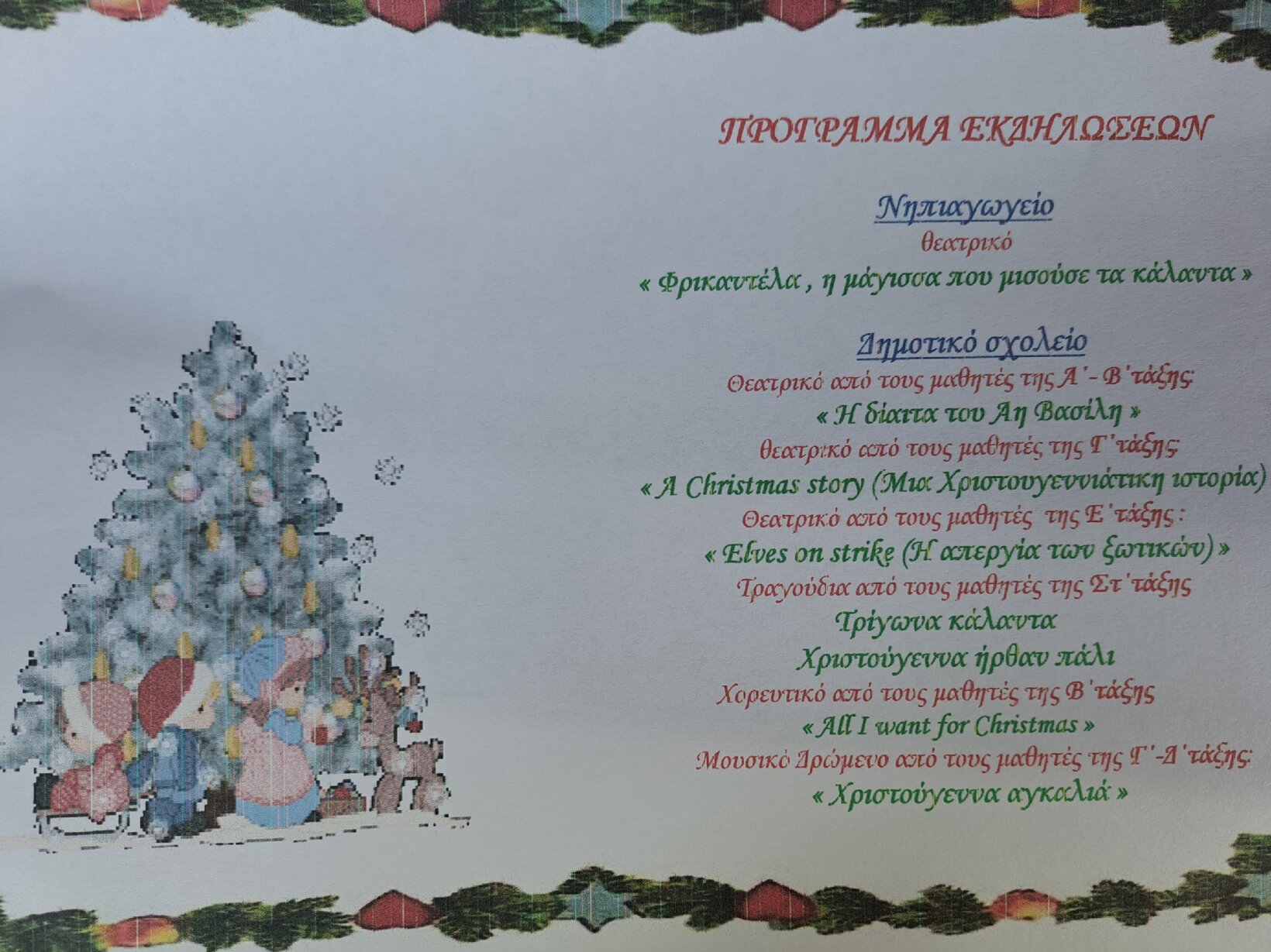 Χριστουγεννιάτικη γιορτή Συντάχθηκε από ΔΗΜΟΤΙΚΟ ΣΧΟΛΕΙΟ ΠΛΑΤΑΙΩΝ ΘΗΒΑΣ στις 7 Ιανουαρίου 2024, 8:08 μμ