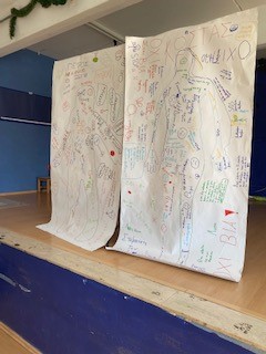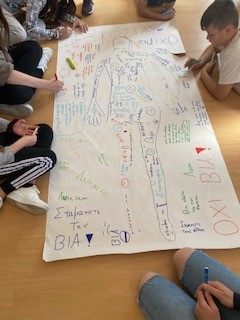 Τέλος, αξίζει να σημειωθεί πως η Διευθύντρια του σχολείου μας, όσο περιμέναμε την καλεσμένη μας, έγραψε με τη βοήθεια των μαθητών/τριών της Β’ τάξης ένα όμορφο ποίημα για την ειρήνη, μιας και εκείνη την ημέρα γιόρταζε η Αγία Ειρήνη.