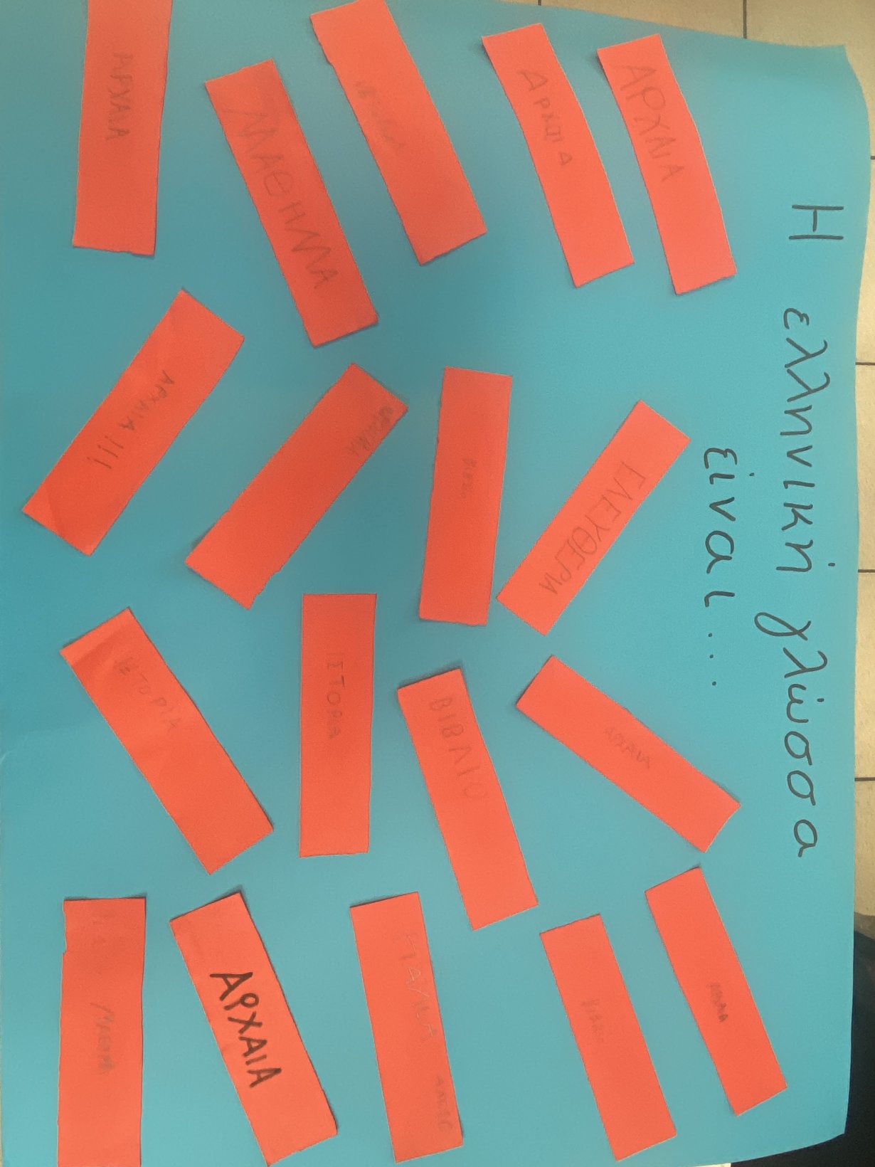 Η δράση ολοκληρώθηκε με φύλλο εργασίας και την παρουσίαση λέξεων ελληνικής προέλευσης που χρησιμοποιούνται σήμερα σε όλο τον κόσμο. Με αυτόν τον τρόπο, οι μαθητές κατανόησαν ότι η ελληνική γλώσσα αποτελεί ζωντανό κομμάτι του παγκόσμιου πολιτισμού.