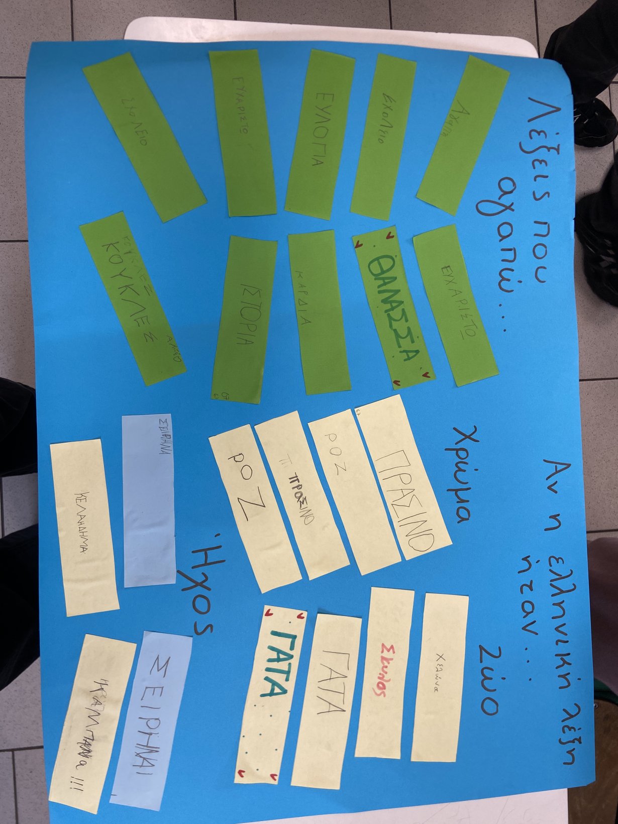 Τα δύο τμήματα της Β τάξης, ενώθηκαν και δούλεψαν μαζί σε ομάδες, φτιάχνοντας διάφορες δραστηριότητες, με κύριο στόχο την ελληνική γλώσσα.