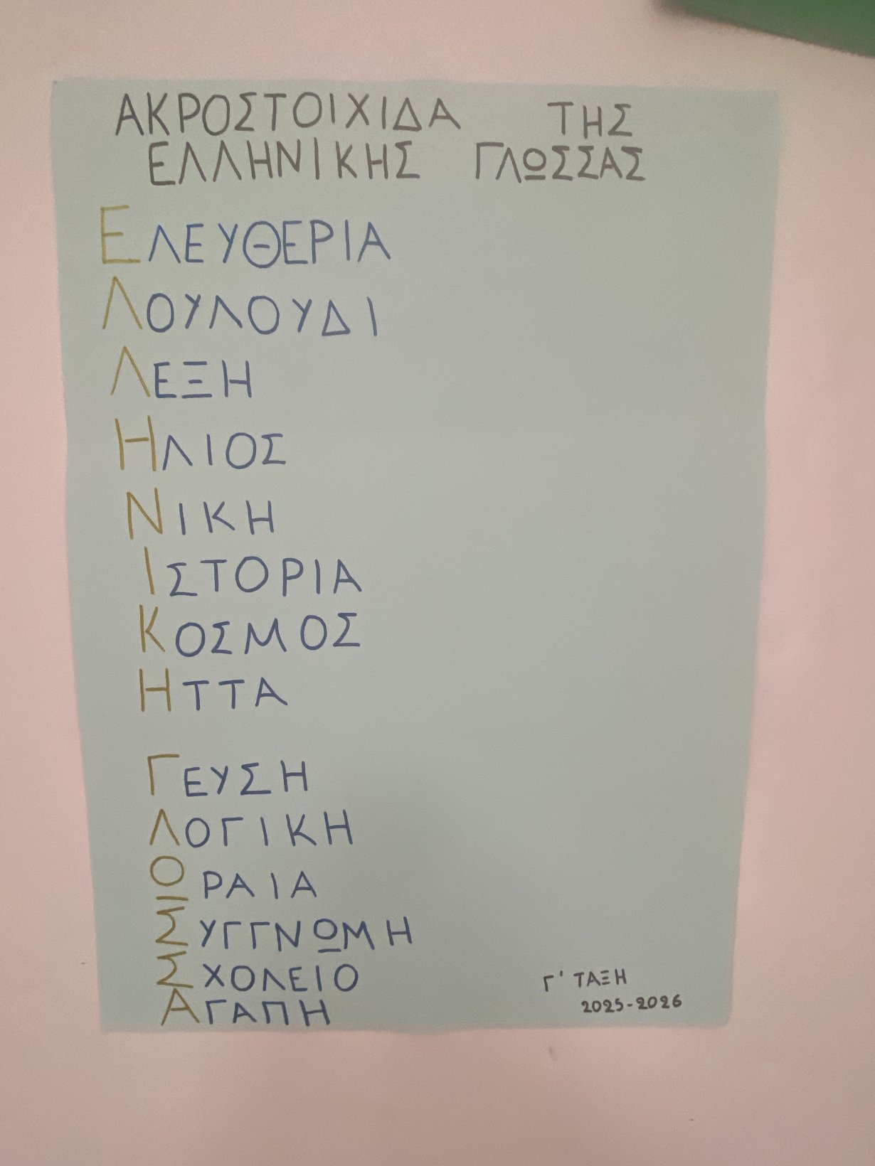 Οι δράσεις με την ΄Γ Δημοτικού υλοποιήθηκαν σε στενή συνεργασία με τον εκπαιδευτικό του ΖΕΠ , με βασικό άξονα την υποστήριξη και την ενεργό συμμετοχή των αλλόγλωσσων μαθητών και μαθητριών .Μέσα απο τη συζήτηση για τις<<λέξεις που ταξιδεύουν >>τα παιδιά είχαν την ευκαιρία να αναγνωρίσουν τη διαχρονικότητα και τη διαπολιτισμική διάσταση της ελληνικής γλώσσας ,αλλά και να συνδέσουν λέξεις της μητρικής τους γλώσσας με την ελληνική. Οι μαθητές δημιούργησαν ακροστιχίδες ,καλλιεργώντας τη γλωσσική έκφραση και τη συνεργασία ,ενώ η κατασκευή χαρτονιών με φράσεις που ξεκινούσαν από το <<Αν η ελληνική γλώσσα ήταν …>>έδωσε χώρο στη φαντασία των παιδιών , ενισχύοντας την αυτοπεποίθηση και την αίσθηση του <<ανήκειν >>,ιδιαίτερα των αλλόγλωσσων μαθητών στη σχολική μας κοινότητα .