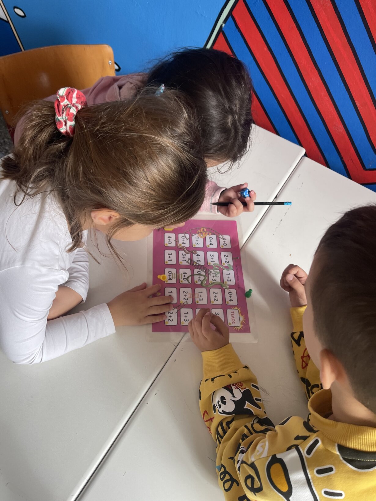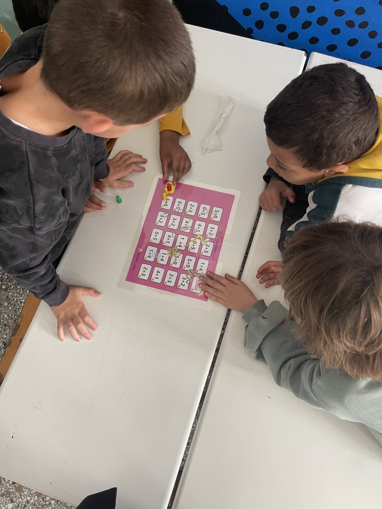 Το παιχνίδι είναι αναπόσπαστο κομμάτι της διδασκαλίας και της μάθησης ιδίως στα μικρά παιδιά! Η αξιοποίηση του συντελεί στην εμπέδωση της νέας γνώσης και στην αξιολόγηση των μαθητών με τρόπο παιγνιώδη και έμμεσο. Το σημερινό μας παιχνίδι αφορούσε τα ζευγαράκια των αριθμών και τους αριθμούς στόχους. Παίξαμε φιδάκι ανά ομάδες σε ταμπλό με τα ζευγαράκια του κάθε αριθμού μέχρι το 10 κάνοντας έτσι επανάληψη στους αριθμούς στόχους. Έπειτα, η κάθε ομάδα κέρδιζε τόσους πόντους όσα και τα ζευγαράκια που εντόπιζε στον πίνακα από τον αριθμό στόχο, σε ορισμένο χρόνο. Τα παιδιά ενθουσιάστηκαν και κινητοποιήθηκαν ενώ παράλληλα έγινε εμπέδωση και αξιολόγηση στο μάθημα των μαθηματικών.