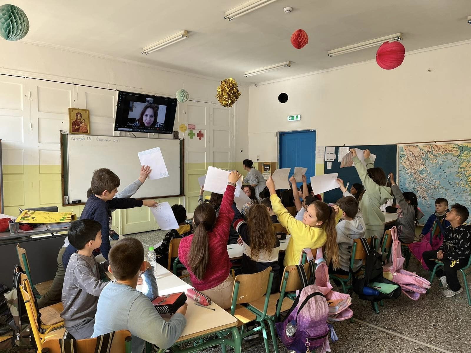 Στο πλαίσιο του σχεδίου δράσης εσωτερικής αξιολόγησης και στο σχέδιο δράσης «Η λέσχη του αναγνώστη» οι μαθητές της Γ και Δ τάξης του σχολείου μας είχαν την ευκαιρία να έχουν μια διαδικτυακή συνάντηση με την εξαιρετική Κα Christina Kasinti συγγραφέα παιδικών βιβλίων. Οι μαθητές των τάξεων αφού διάβασαν τα βιβλία της, έκαναν ερωτήσεις στην συγγραφέα, έκαναν προτάσεις για επόμενα βιβλία, ενθουσιάστηκαν μαζί της και κατέγραψαν εικόνες και εμπειρίες σε ζωγραφιές και αφίσα! Την ευχαριστούμε θερμά που διέθεσε από τον πολύτιμο χρόνο της στη σχολική μας μονάδα και της ευχόμαστε να γράψει κι άλλα πολλά, τόσο υπέροχα βιβλία!!!