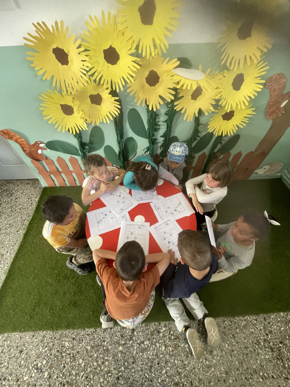 Αρχικά, γνωρίσαμε τις διάφορες εντολές που δίνουμε με τα κουμπιά που έχει πάνω του και τη λειτουργία του Beebot και αναπαραστήσαμε την κίνηση του στο χώρο βιωματικά με τους μαθητές.