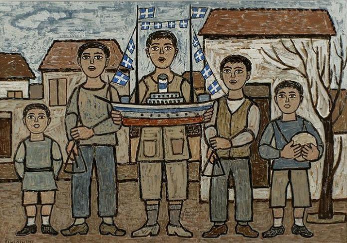 Ένας άλλος αγαπημένος πίνακας, αρκετά πιο σύγχρονος, είναι “Τα κάλαντα” του Γιώργου Σικελιώτη. Τον ζωγράφισε το 1962.