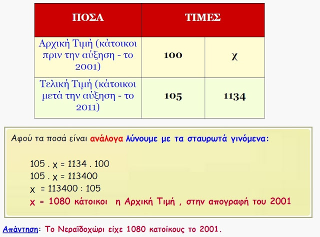 Διαιρώ τα ομοειδή: 1.134 : 1,05 = 1.080 κάτοικοι