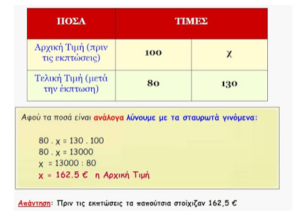 1. Πώς βρίσκουμε την Αρχική Τιμή Α.Τ. όταν γνωρίζουμε το ποσοστό και την τιμή που αυτό αντιπροσωπεύει (δηλ. την αύξηση ή τη μείωση)