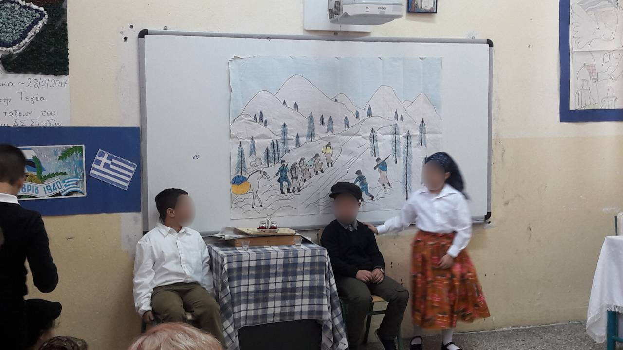 Η σχολική μας γιορτή για την επέτειο της 28ης Οκτωβρίου 1940 πραγματοποιήθηκε την Παρασκευή 26/10/2018. Οι μαθητές/τριες των Γ-Δ και Ε-Στ τάξεων του σχολείου μας παρουσίασαν θεατρικά έργα όπως το “ΟΧΙ του Μεταξά”, την “Πλατεία”,“Οι γυναίκες της Πίνδου”,” Στα βουνά της Πίνδου”,“Γιατί πολέμησες παππού;”.