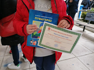 Οι μαθητές/τριες του Δημοτικού Σχολείου Τροπαίων συμμετείχαν το Σάββατο 15 Φεβρουαρίου 2020, στο νέο Πανελλήνιο Διαγωνισμό «Πυθαγόρας», που πραγματοποιήθηκε για τις Σχολικές Μονάδες της Αρκαδίας στο 2ο Γυμνάσιο Τρίπολης, υπό την αιγίδα της Ελληνικής Μαθηματικής Εταιρείας.