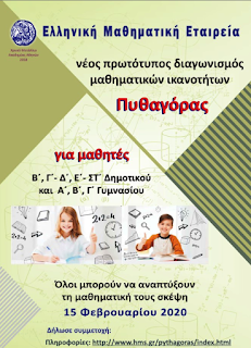 Από την Επιτροπή του Διαγωνισμού “Πυθαγόρας” της ΕΜΕ ανακοινώθηκαν τα αποτελέσματα του Πανελλήνιου Μαθητικού Διαγωνισμού “Πυθαγόρας” που πραγματοποιήθηκε στις 15 Φεβρουαρίου 2020.