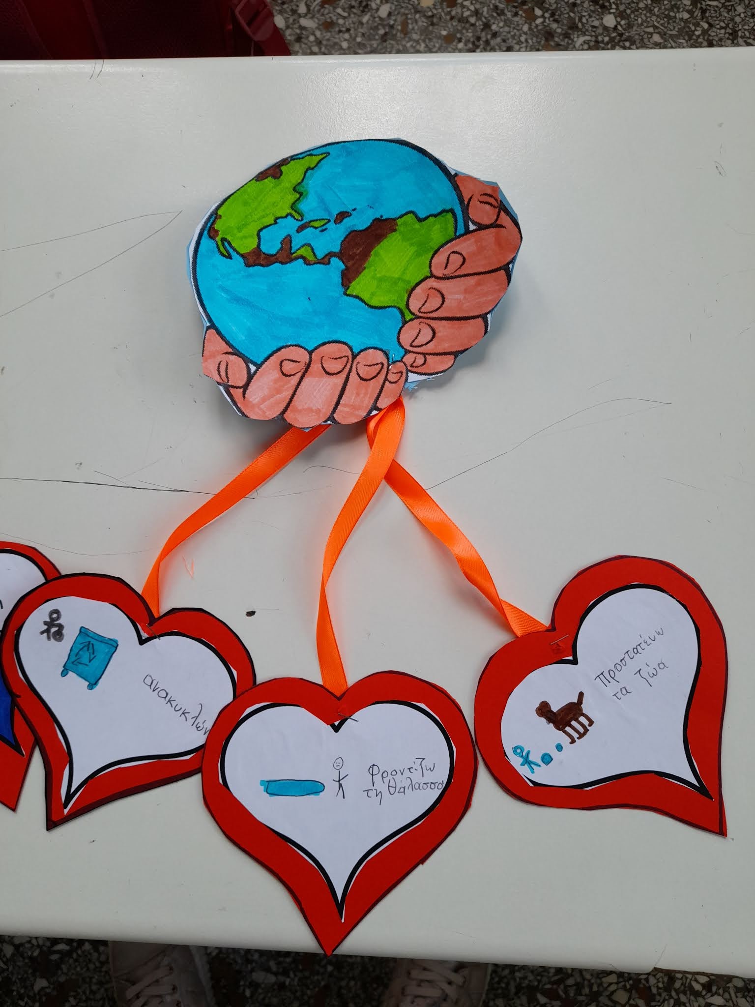 επεξεργαστήκαν εποπτικό υλικό (φυλλάδια, παρουσίαση στον υπολογιστή, βίντεο) και έπειτα μιλήσαν για διάφορους τρόπους προστασίας του. Στη συνέχεια έφτιάξαμε μια χειροτεχνία στην οποία τα παιδιά έγραψαν και ζωγράφισαν τρεις τρόπους με τους οποίους μπορούμε να προστατεύσουμε τη γη.