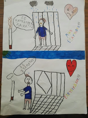 Η 6η Μαρτίου έχει καθιερωθεί από το Υπουργείο Παιδείας ως Πανελλήνια Ημέρα κατά της σχολικής βίας και του εκφοβισμού. Γι’ αυτό το λόγο αφιερώσαμε αρκετό χρόνο στο να εξηγήσουμε τι είναι ο σχολικός εκφοβισμός, τα είδη του εκφοβισμού και πώς τον αντιμετωπίζουμε. Παρακολουθήσαμε σε ζωντανή μετάδοση την εκδήλωση του Χαμόγελου του Παιδιού “Μίλα Τώρα”, μια εκστρατεία ενημέρωσης για τον σχολικό εκφοβισμό, στην οποία συμμετείχαμε. Είδαμε πολλά παραδείγματα με περιπτώσεις bullying και μιλήσαμε για τα συναισθήματα των θυμάτων, των θυτών και των παρατηρητών. Φτιάξαμε ένα κολλάζ, διαβάσαμε ένα σχετικό βιβλίο και το σχολιάσαμε.