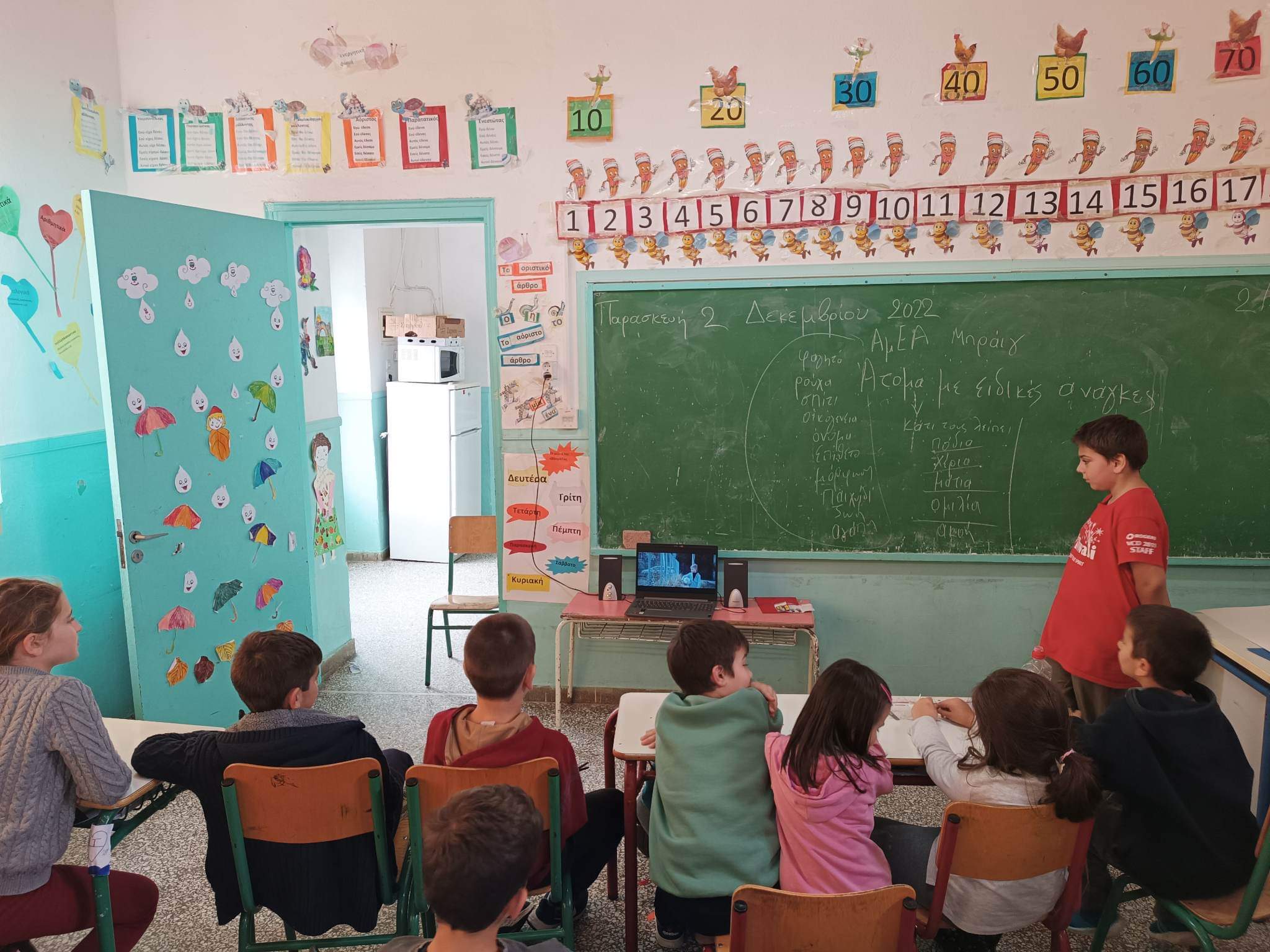 Ξεκινήσαμε με συζήτηση επί του θέματος και την προβολή βίντεο-ταινιών μικρού μήκους με τα οποία τα παιδιά εκφράστηκαν ελεύθερα, είπαν τις απόψεις τους και τις προτάσεις τους για το τι μπορούμε να κάνουμε είτε πρακτικά είτε ψυχολογικά, ώστε να βοηθήσουμε ένα παιδί με Αναπηρία στην καθημερινότητα του..