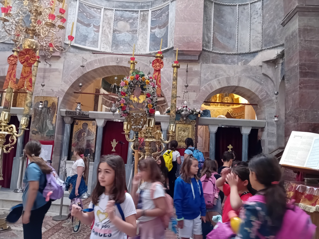 Τα παιδιά γνώρισαν την ιστορία του , θαύμασαν τα μοναδικά ψηφιδωτά του και μαγεύτηκαν από την ομορφιά του φυσικού τοπίου.