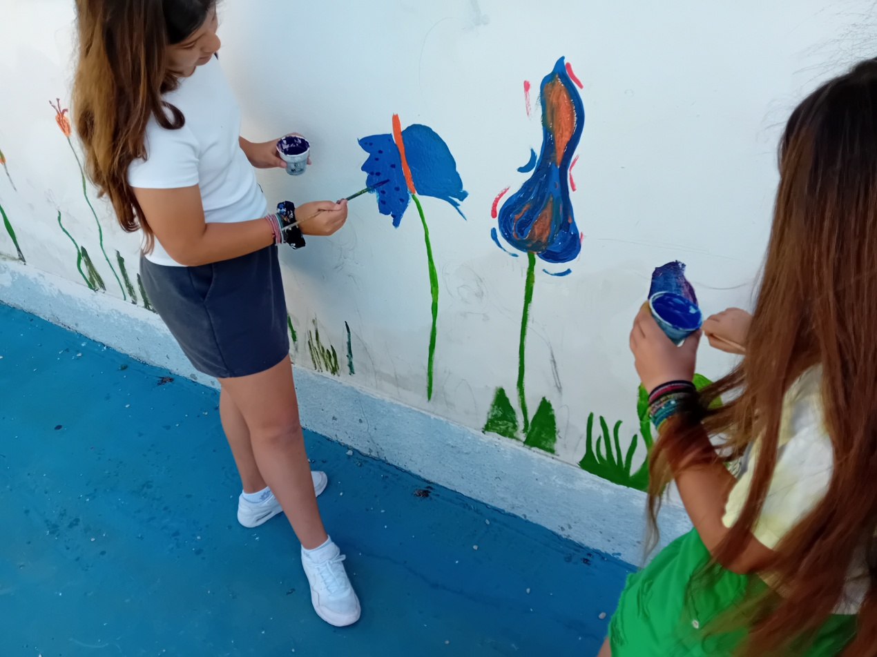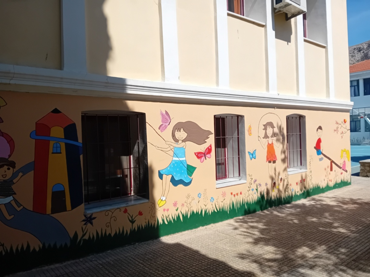 Οι μαθητές σχεδίασαν και έβαψαν κάποιους τοίχους του σχολείου οι οποίοι μεταμορφώθηκαν σε πολύχρωμες τοιχογραφίες με θέμα το περιβάλλον και τη φύση. Τα παιδιά πειραματίστηκαν με τα πινέλα και τις μπογιές, εξοικειώθηκαν με τη ζωγραφική πάνω σε τοίχο και καλλιέργησαν δεξιότητες όπως ο σεβασμός στην έκφραση και στις ιδέες του άλλου, η αλληλοβοήθεια, η συνεργασία και η συναίσθηση της ευθύνης γι’ αυτό που δημιουργούν.