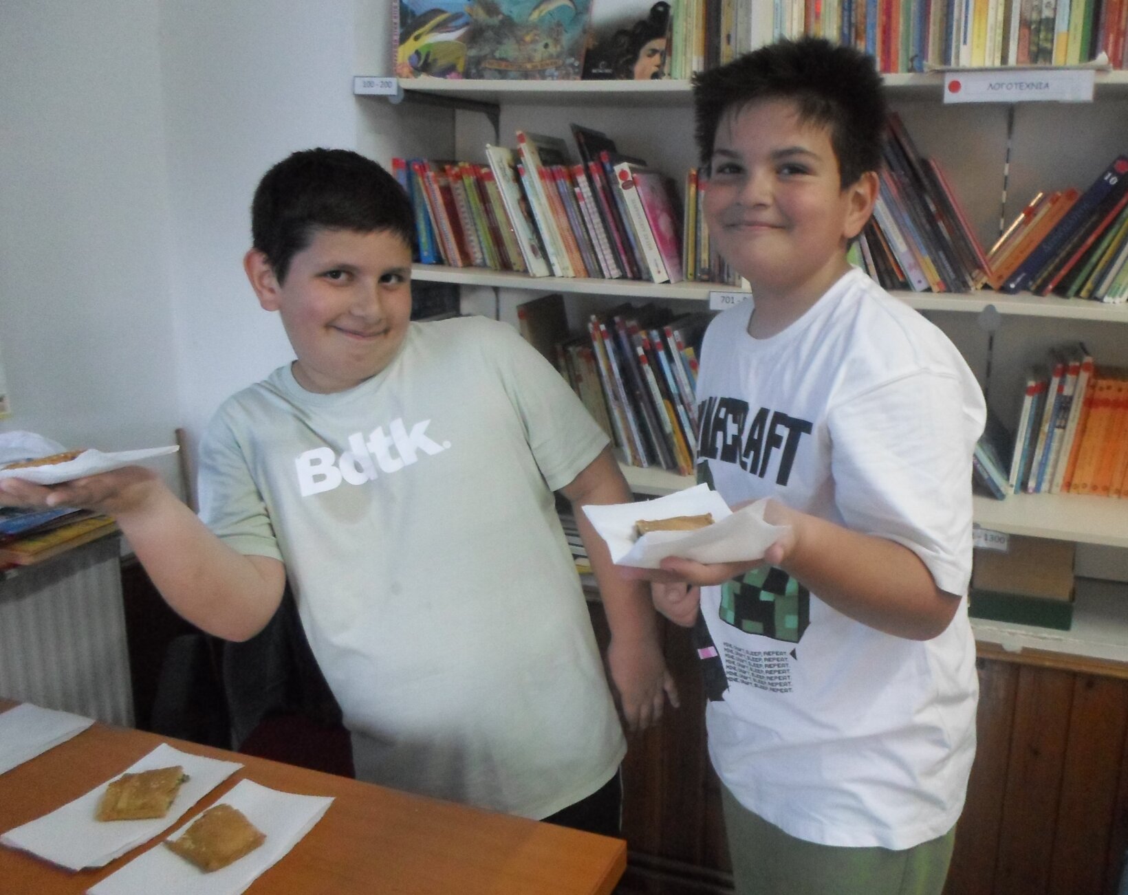 Μετά τη δημιουργία λαχανόκηπου και βοτανόκηπου, ήρθε η ώρα να γευτούμε τα λαχανικά και τα βότανα για τα οποία έχουμε συζητήσει κι έχουμε μάθει τόσα πολλά γι’ αυτά από τις προηγούμενες δράσεις μας. Σκοπός της εν λόγω δράσης είναι να εντάξουν τα παιδιά την υγιεινή διατροφή στην καθημερινότητά τους και να έρθουν σε επαφή με αγνά βιολογικά υλικά που παράγει ο τόπος μας. Σε συνεργασία με γονείς της Δ’ Τάξης, οι οποίοι ετοίμασαν πίτες, συγκεκριμένα σπανακόπιτα και χορτόπιτα, κεράστηκαν τα παιδιά απολαμβάνοντας έτσι ένα δεκατιανό γεύμα στο σχολείο. Να τους ευχαριστήσουμε που είναι πάντα δίπλα μας πρόθυμοι και συνεργάσιμοι σε ό,τι χρειαστούμε.