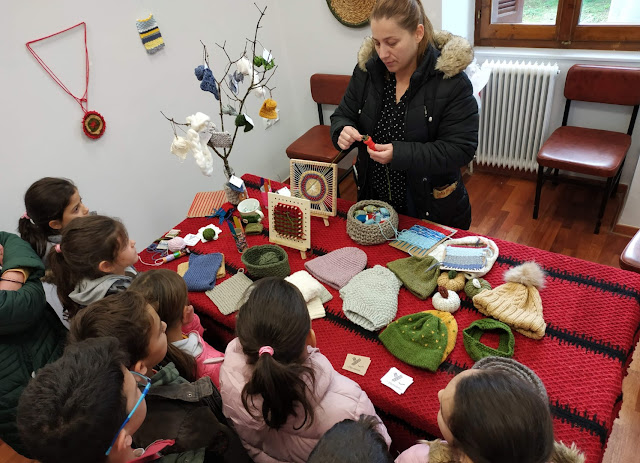 Την ευκαιρία να επισκεφθούν την έκθεση είχαν οι μαθητές και μαθήτριες του Δημοτικού Σχολείου Βυτίνας με τη συνοδεία των εκπαιδευτικών, στο πλαίσιο υλοποίησης δραστηριοτήτων της σχολικής ζωής. Οι μαθητές/-τριες ξεναγήθηκαν στους χώρους του νεοκλασικού κτηρίου, θαύμασαν τις πρωτότυπες δημιουργίες και, με την πολύ ζεστή και ευχάριστη καθοδήγηση της υπεύθυνης για την ξενάγηση του σχολείου στην έκθεση κ. Βενετίας, μεταφέρθηκαν πίσω στον χρόνο μαθαίνοντας για τις τεχνικές του πλεξίματος και της ύφανσης κεντημάτων, την κατασκευή χειροποίητων κοσμημάτων, αλλά και για τη διαδικασία απόσταξης αιθέριων ελαίων με αυθεντικές παραδοσακές μεθόδους.