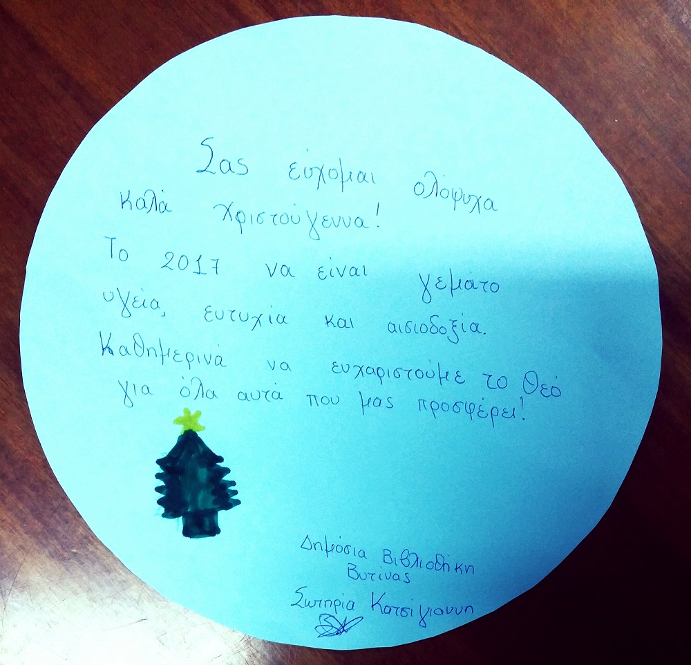 Οι ευχές μας στάλθηκαν στην Αθήνα για τον στολισμό του “δέντρου των ευχών” της Εθνικής Βιβλιοθήκης που θα κοσμεί το νέο κτίριο στο οποίο στεγάζεται.