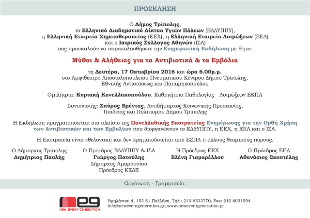 Μύθοι και αλήθειες για τα αντιβιοτικά Περισσότερα εδώ Primary School of Vytina 14 Οκτωβρίου 2016 Ενημέρωση Δεν επιτρέπεται σχολιασμός στο Μύθοι και αλήθειες για τα αντιβιοτικά