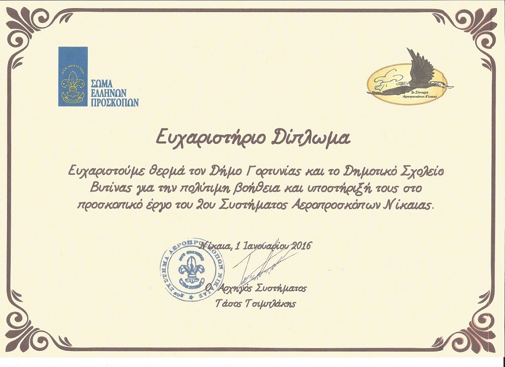 Ευχαριστήριο δίπλωμα Primary School of Vytina 13 Ιανουαρίου 2016 Έπαινοι Δεν επιτρέπεται σχολιασμός στο Ευχαριστήριο δίπλωμα