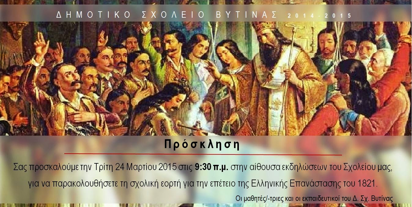 Πρόσκληση για την επέτειο της 25ης Μαρτίου Primary School of Vytina 22 Μαρτίου 2015 Εκδηλώσεις Δεν επιτρέπεται σχολιασμός στο Πρόσκληση για την επέτειο της 25ης Μαρτίου