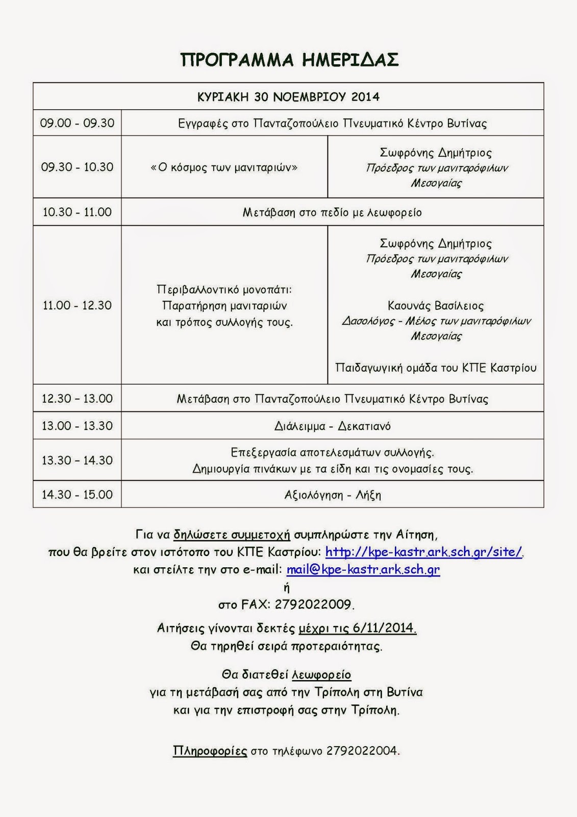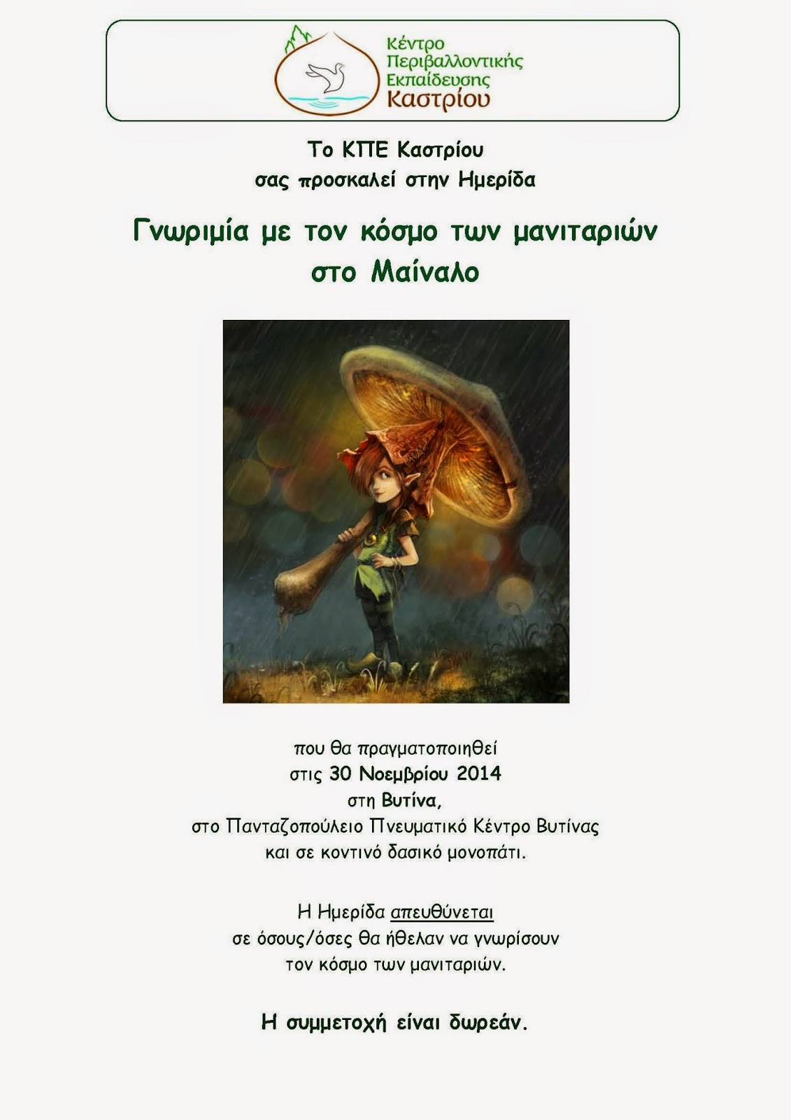 Ημερίδα: “Γνωριμία με τον κόσμο των μανιταριών” Primary School of Vytina 5 Νοεμβρίου 2014 Εκδηλώσεις Δεν επιτρέπεται σχολιασμός στο Ημερίδα: “Γνωριμία με τον κόσμο των μανιταριών”