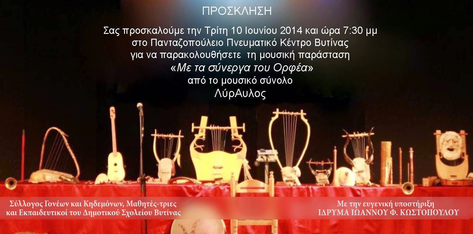 Πρόσκληση για τη μουσική παράσταση: “Με τα σύνεργα του Ορφέα”