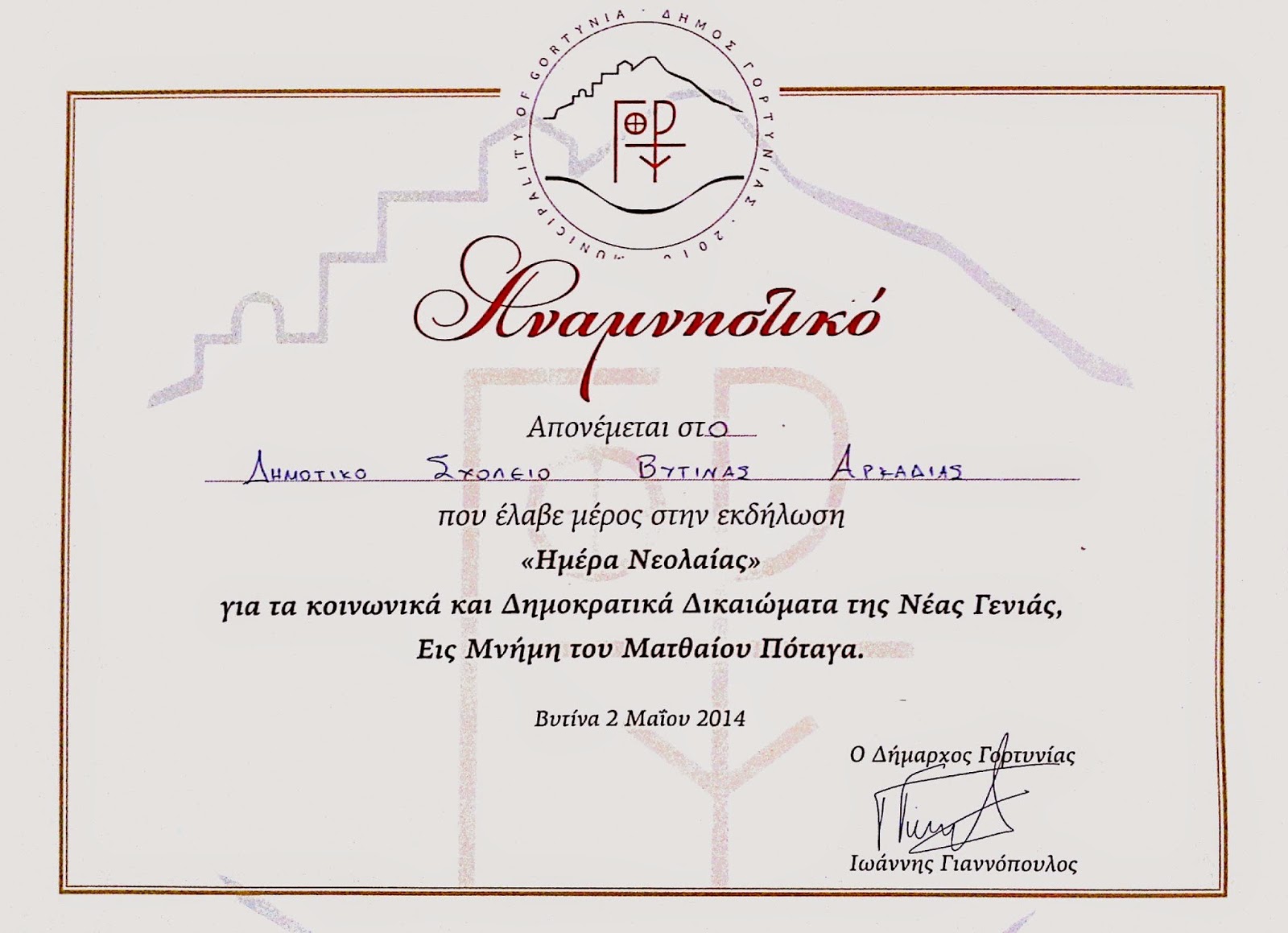 Ημέρα Νεολαίας εις μνήμην Ματθαίου Πόταγα Primary School of Vytina 4 Μαΐου 2014 Χωρίς κατηγορία Δεν επιτρέπεται σχολιασμός στο Ημέρα Νεολαίας εις μνήμην Ματθαίου Πόταγα