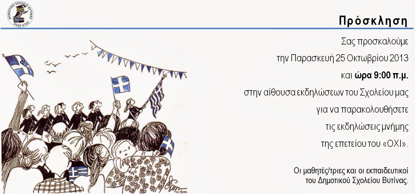 Πρόσκληση Primary School of Vytina 24 Οκτωβρίου 2013 Εκδηλώσεις Δεν επιτρέπεται σχολιασμός στο Πρόσκληση