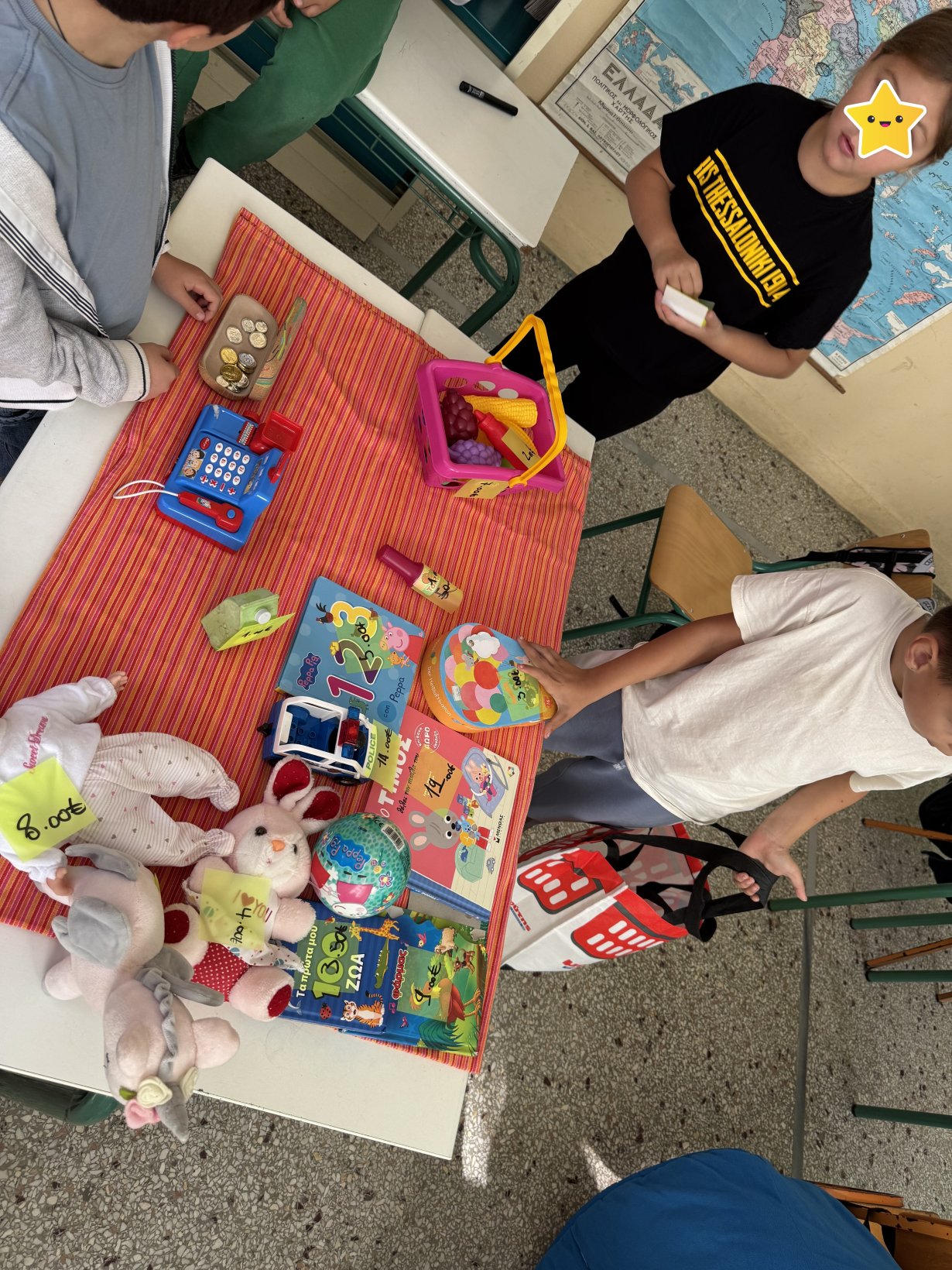 Σήμερα, στην ώρα των Μαθηματικών, για να κάνουμε εισαγωγή στην έννοια της αφαίρεσης, πραγματοποιήσαμε μια βιωματική δράση στην τάξη. Τον αλγόριθμο της αφαίρεσης τον έχουμε διδαχθεί ήδη από την πρώτη τάξη ωστόσο, στην γ τάξη καλούμαστε πλέον να κάνουμε πράξεις με μεγαλύτερους αριθμούς αλλά και χρηματικά ποσά. Στήσαμε λοιπόν, ένα μικρό “μαγαζάκι” με διάφορα προϊόντα και τιμές όσο το δυνατόν πιο αληθοφανείς. Τα παιδιά εναλλάσσονταν σε ρόλους ταμία και πελάτη, χρησιμοποιώντας χαρτονομίσματα και κέρματα για να κάνουν τις αγοραπωλησίες τους.