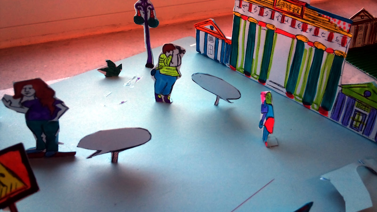 Jedes Kind bastelt seine eigene Figur in ungefähr DinA4 Größe. Die Figuren werden auf einen großen Karton geklebt. Sobald neuer Wortschatz erworben ist, wird von den Schülern selbst eine neue Sprechblase drauf gepinnt oder geklebt. Am Ende des Schuljahrs sollte jede Figur von mindestens 6 Sprechblasen umrahmt sein….