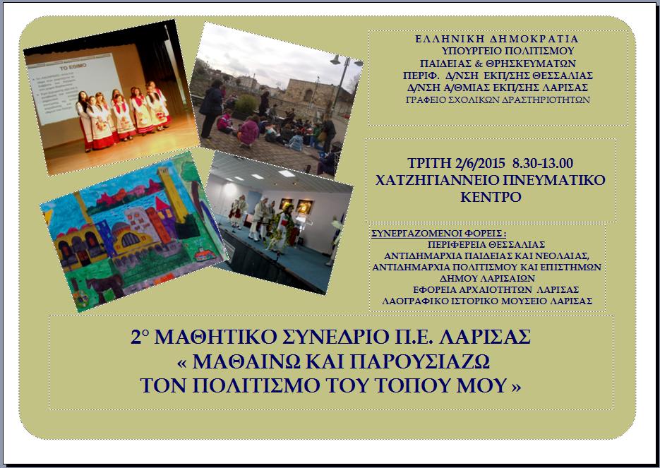 από την Υπεύθυνη Σχολ. Δραστ. Π.Ε. Λάρισας