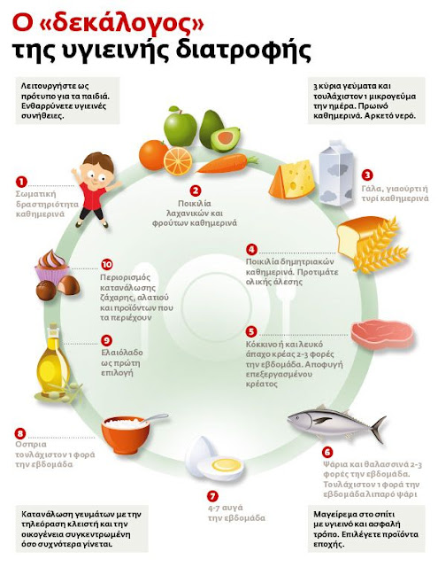 Σας επισυνάπτω τη διατροφική πυραμίδα και τον “δεκάλογο” της υγιεινής διατροφής.
