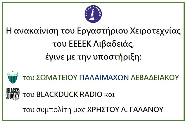 Το ΕΡΓΑΣΤήΡΙΟ ΕΙΔΙΚήΣ ΕΠΑΓΓΕΛΜΑΤΙΚήΣ ΕΛΠΑίΔΕΥΣΗΣ ΛΙΒΑΔΕΙάΣ, (ΕΕΕΕΚ Λιβαδειάς), ιδρύθηκε με το υπ. αριθμ. 1494/10-10-2003 ΦΕΚ του Υπουργείου Παιδείας.