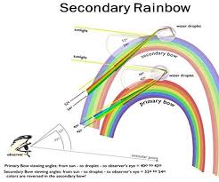 Εικόνα: ΤΟ ΔΙΠΛΟ ΟΥΡΑΝΙΟ ΤΟΞΟ: Η φωτεινή, εσωτερική ζώνη είναι το κύριο τόξο. Χωρίζεται από το πιο αμυδρό δευτερεύον τόξο από μια περιοχή, που ονομάζεται σκοτεινή ζώνη του Αλεξάνδρου, η οποία είναι αισθητά πιο σκούρα από τον περιβάλλοντα ουρανό. Κάτω από το κύριο τόξο υπάρχουν μερικές αχνές ροζ και πράσινες ρίγες. Πρόκειται για υπεράριθμα τόξα. Το έργο της θεωρίας είναι να δώσει μια ποσοτική εξήγηση για καθένα από αυτά τα χαρακτηριστικά.