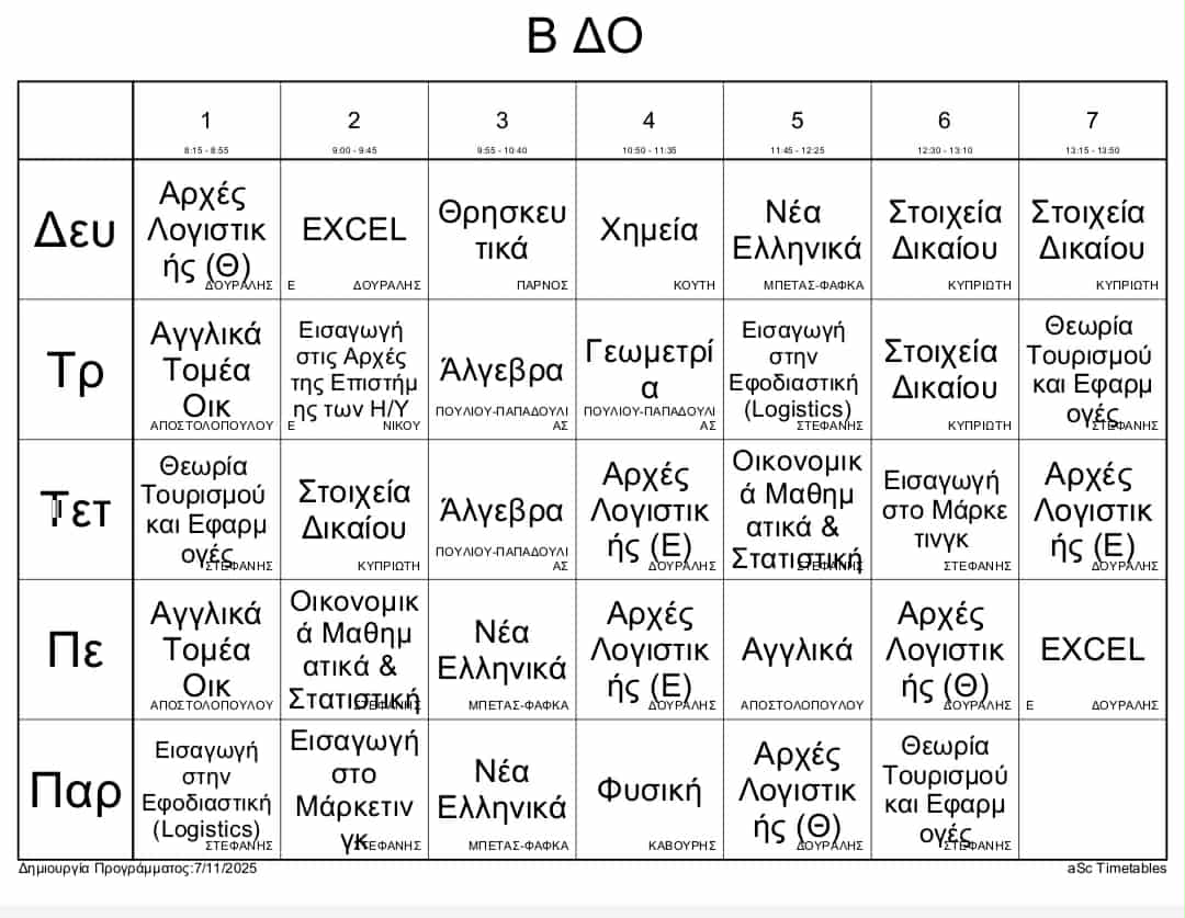 Νέο πρόγραμμα μαθημάτων! ΕΠΑ.Λ ΣΚΙΑΘΟΥ 7 Νοεμβρίου 2025 7 Νοεμβρίου 2025 Δεν επιτρέπεται σχολιασμός στο Νέο πρόγραμμα μαθημάτων!