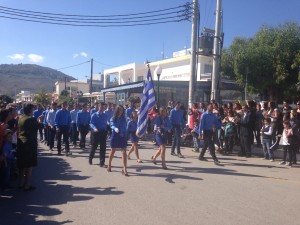 Students of Lykeio Archagelou in official school uniform for the parade of 28th October 2015