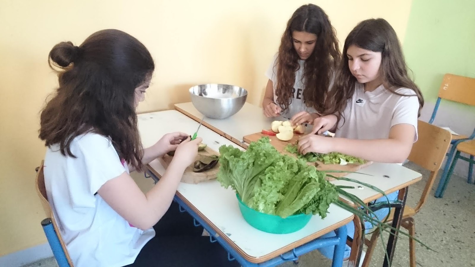 Υποδοχή από μία μικρή ομάδα μαθητών και μαθητριών καθώς και τις καθηγήτριες κ .Μόνικα Βαφειάδη και κ. Sabine.