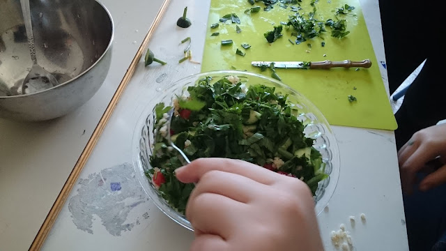 Erstes Kennenlernen unserer Schülergruppe mit ihren Austauschschülern und Schülerinnen und deren Familien bei einer herrlich vorbereiteten Begrüßung.