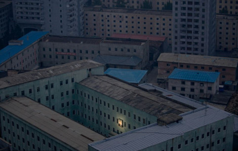 Το πορτραίτο του ηγέτης της Βόρειας Κορέας κοσμεί το εσωτερικό ενός μπλογκ πολυκατοικιών της χώρας…