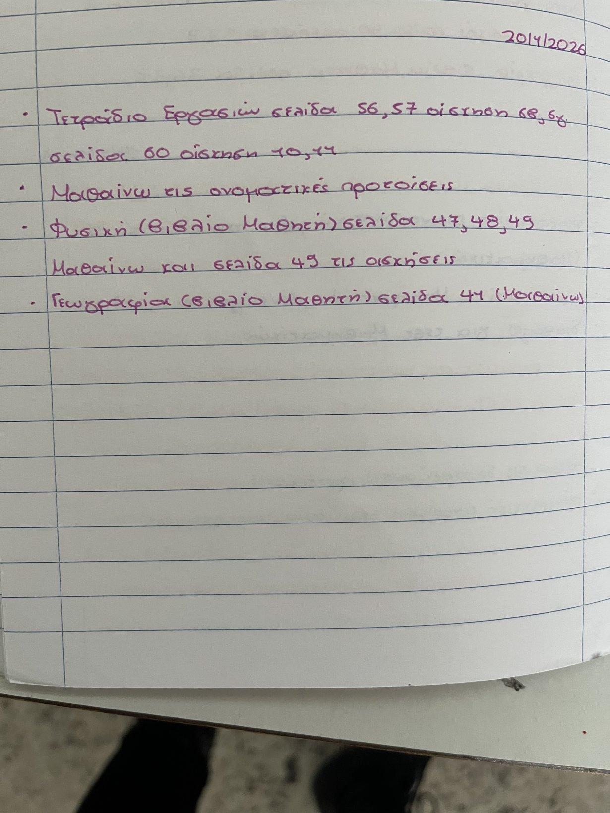 Για αύριο έχουν την ασκηση σελ.46 και άσκηση 6 σελ.50