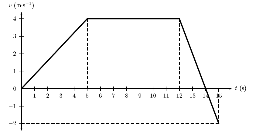 Ένα αυτοκίνητο, που κινείται με σταθερή ταχύτητα, συναντά μια μηχανή σε φανάρι. Δεδομένου ότι το αυτοκίνητο ξεπερνα τη μοτοσικλέτα, η μοτοσικλέτα επιταχύνει σταθερά απο στάση για 10 s. Το ακόλουθο διάγραμμα θέσης χρόνου αντιπροσωπεύει τις κινήσεις των δύο οχημάτων μετά από το φανάρι.