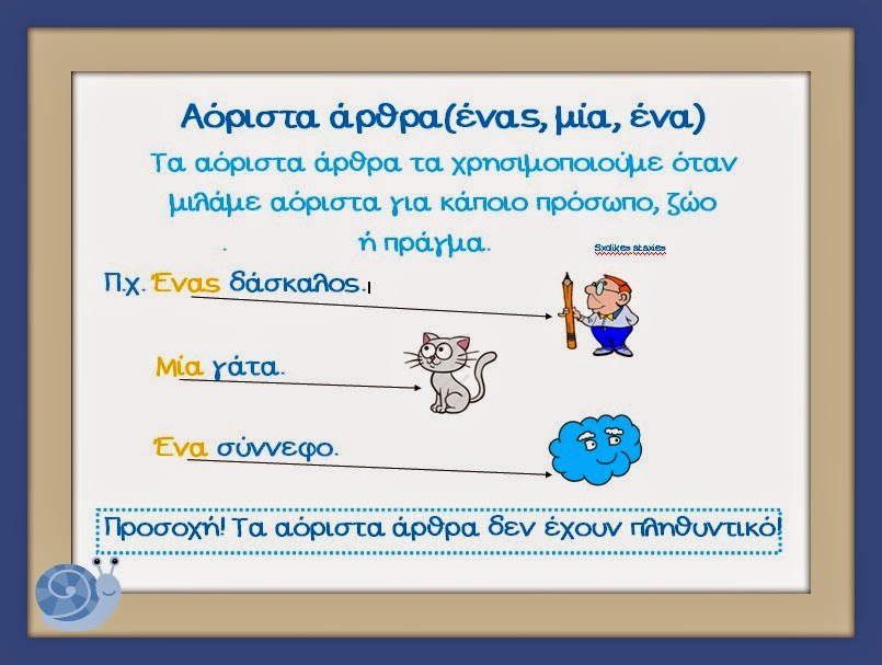 Οριστικά και αόριστα άρθραΠαίζω με τον Έλμερ και μαθαίνω τα οριστικά και αόριστα άρθρα. Σύρω με το ποντίκι μου τα οριστικά άρθρα στο Έλμερ και τααόριστα άρθρα σε ένα άλλο ελέφαντα. Αν έχω δίκιο τότε ο ελέφαντας ανασηκώνει την προβοσκίδα του |