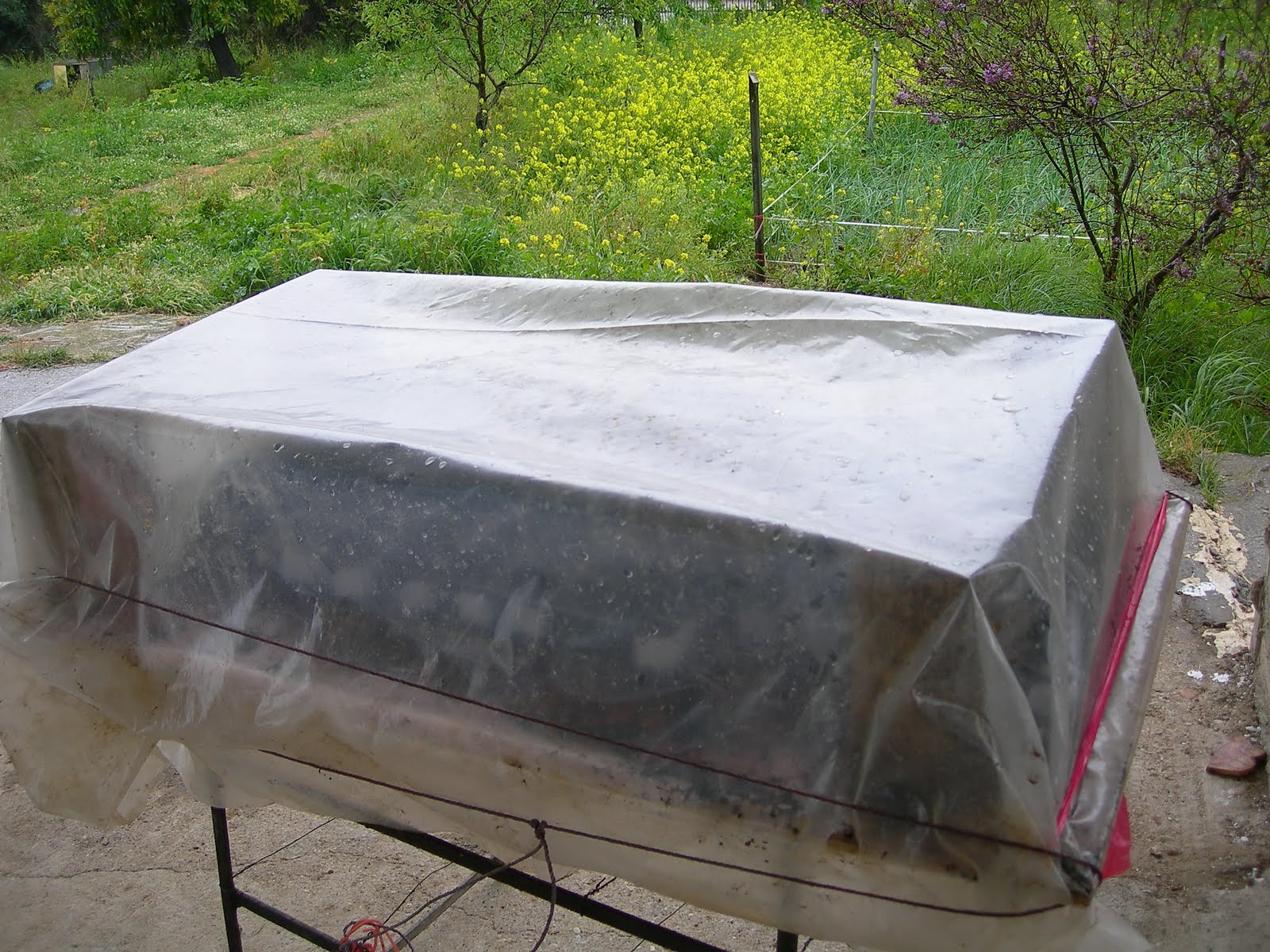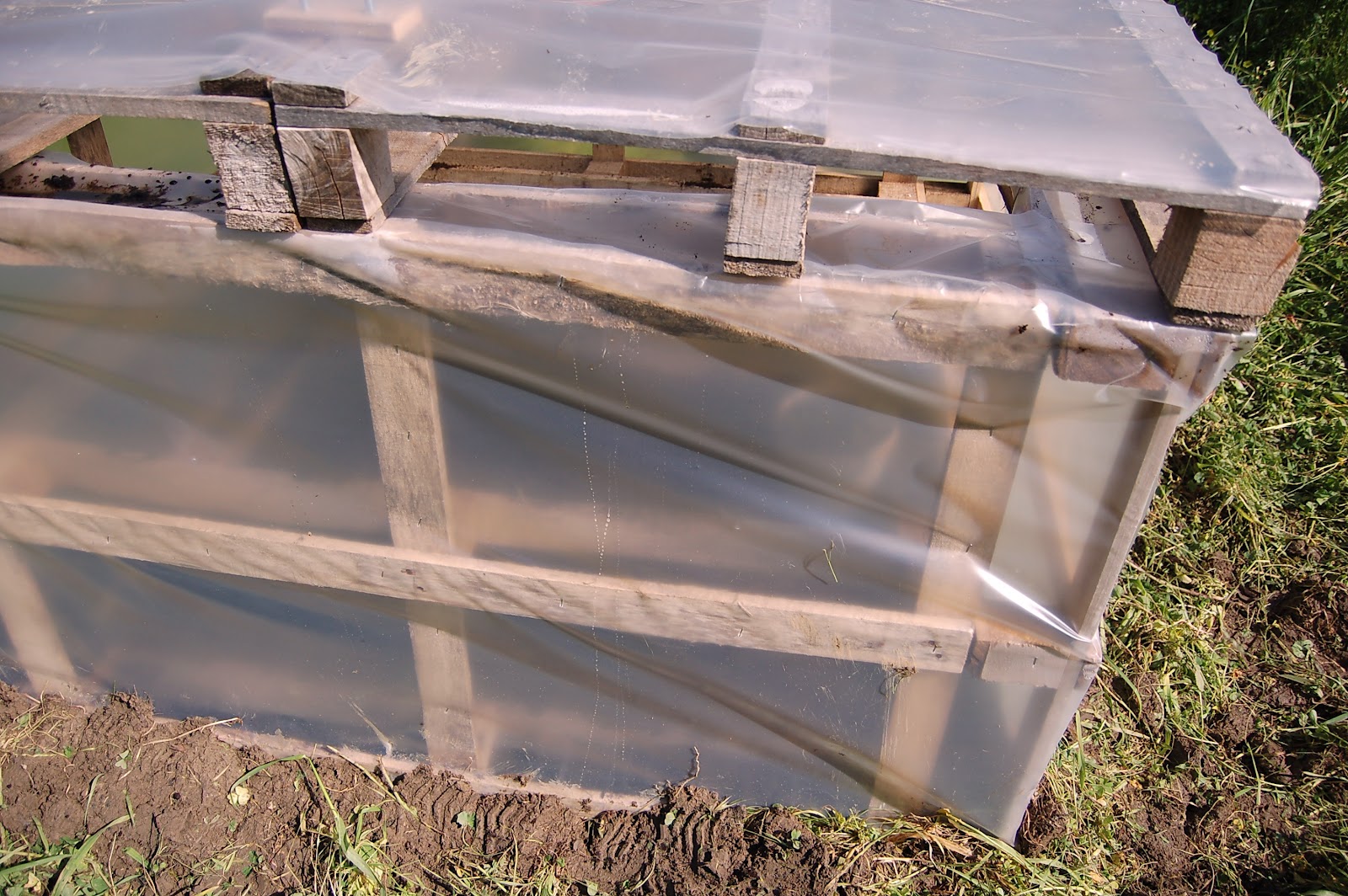 | Η κάτω μεριά με το στρωμένο πλαστικό και λίγο κομπόστ για την υγρασία |