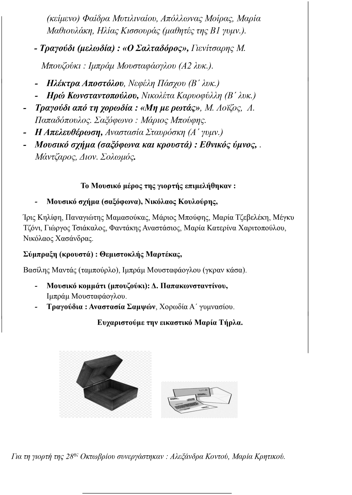 Η Διεύθυνση και ο Σύλλογος Διδασκόντων του Σχολείου