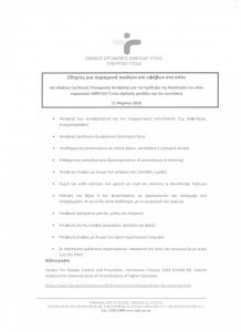 Σας ενημερώνουμε ότι σύμφωνα με την Κοινή Υπουργική Απόφαση ΔΙα/ΓΠ.οικ. 16838/2020 – ΦΕΚ 783/Β/10-3-2020 εφαρμόζεται η επιβολή του μέτρου της προσωρινής απαγόρευσης λειτουργίας των σχολικών μονάδων, βρεφονηπιακών και παιδικών σταθμών, νηπιαγωγείων, ανωτάτων εκπαιδευτικών ιδρυμάτων, κέντρων ξένων γλωσσών, φροντιστηρίων και πάσης φύσεως εκπαιδευτικών δομών, φορέων και ιδρυμάτων, δημοσίων και ιδιωτικών, κάθε τύπου και βαθμού της χώρας για το χρονικό διάστημα από 11.3.2020 έως και 24.3.2020.
