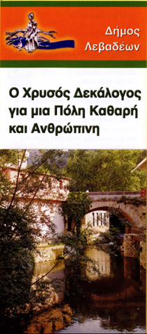 Από το διαφημιστικό φυλλάδιο του Δήμου Λεβαδέων “Ο Χρυσός Δεκάλογος για μια Πόλη Καθαρή και Ανθρώπινη”